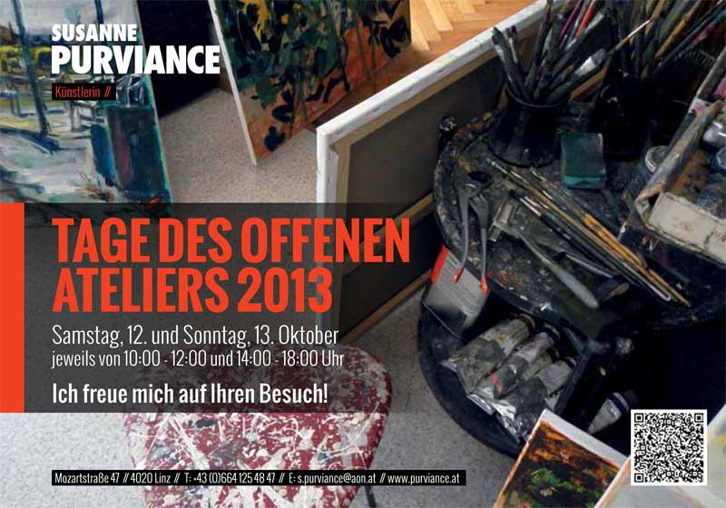 Am 12. und 13. Oktober 2013 (10:00 - 12:00 und 14:00 - 18:00) ist mein Atelier für alle Kunstliebhaber offen.